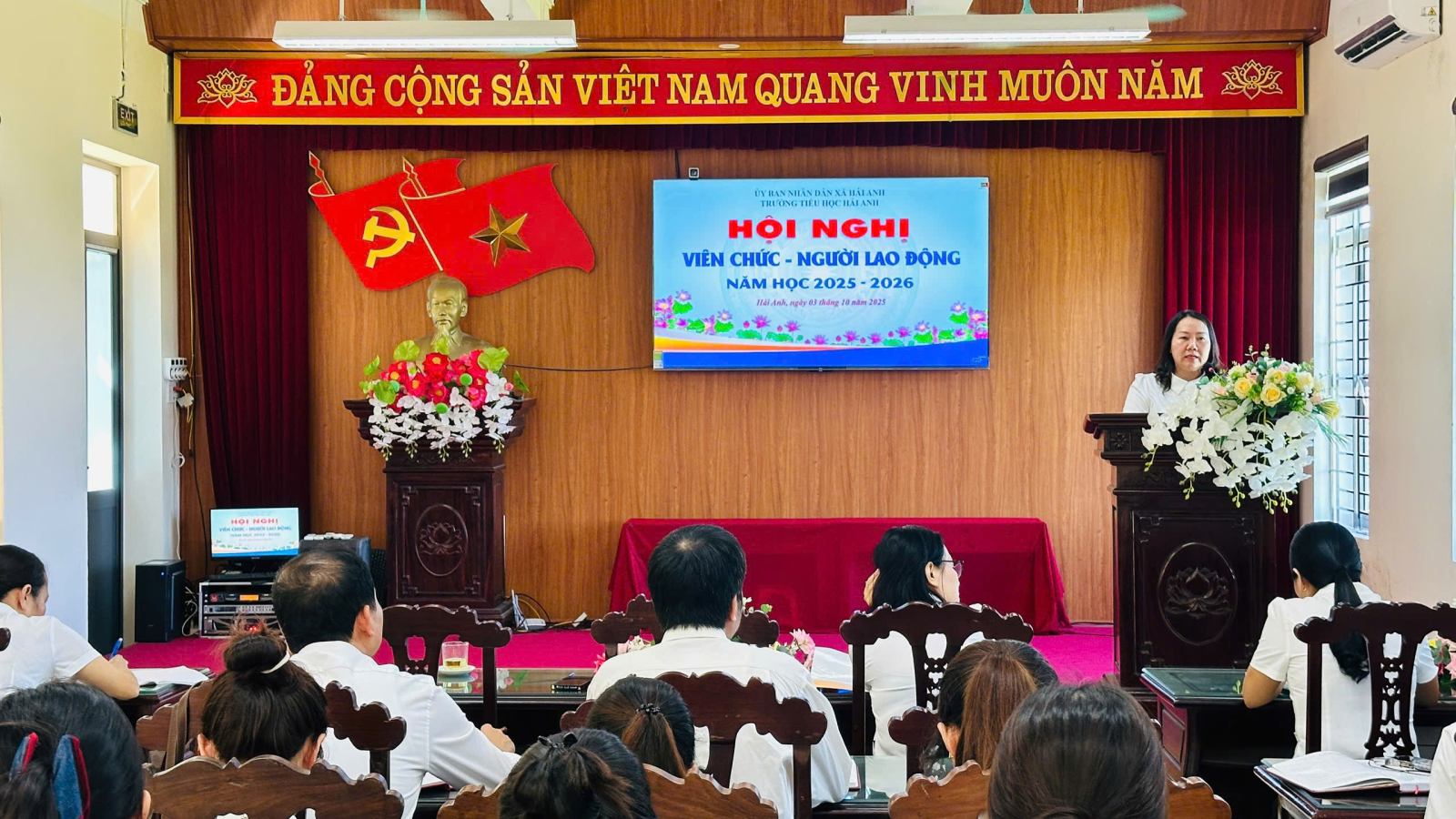 Hội nghị Viên chức, người lao động Trường Tiểu học Hải Anh năm học 2025-2026 đã diễn ra trong không khí dân chủ, đoàn kết và trách nhiệm. Hội nghị đã khẳng định quyết tâm của tập thể cán bộ, giáo viên, nhân viên nhà trường trong việc thực hiện thắng lợi chủ đề năm học “Kỷ cương – Sáng tạo – Đột phá – Phát triển”. Đây sẽ là kim chỉ nam để toàn thể nhà trường nỗ lực đổi mới, phát huy sức mạnh tập thể, không ngừng nâng cao chất lượng giáo dục, xây dựng trường Tiểu học Hải Anh ngày càng vững mạnh và phát triển bền vững.